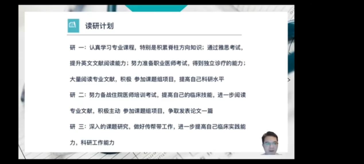 主讲教师从考研复试流程、面试技巧、注意事项、读研规划、OSCE临床技能考核等方面进行了详细讲解培训,旨在提高上线学子的复试信心与能力,进一步提升考研升学率。