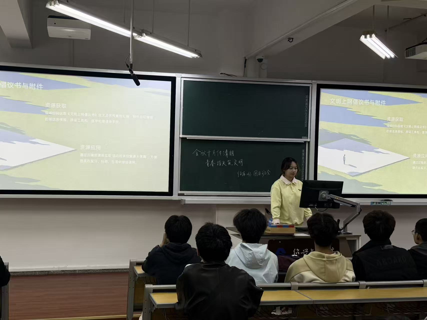 在秋季来临之时,为增强同学们的网络文明意识,维护清朗的网络环境,临床253班全体同学于十月三十日在财贞楼415教室举行了“金秋十月传清朗,青春指尖筑文明”主题团日活动。