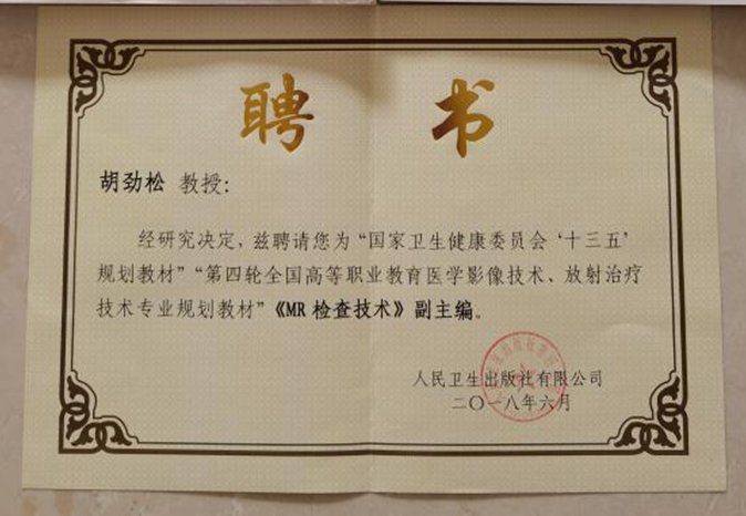 近日,由医学院影像技术教研室主任、校附属医院放射科副主任胡劲松副主任技师担任副主编的《MRI检查技术》和《磁共振检查技术》两本教材在人民卫生出版社正式出版。