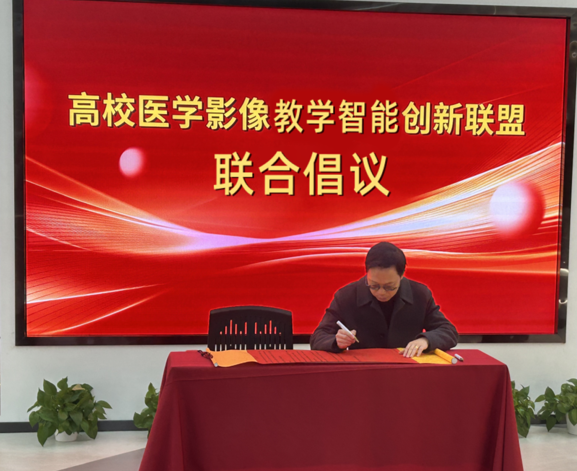 会议压轴环节,专家代表上台共同签署《高校医学影像教学智能创新联盟倡议书》。这一重要时刻,标志着我国高校医学影像教学智能创新改革迈入协同发展、智能升级的新阶段,也为医学影像人才培养高质量发展奠定了坚实基础。