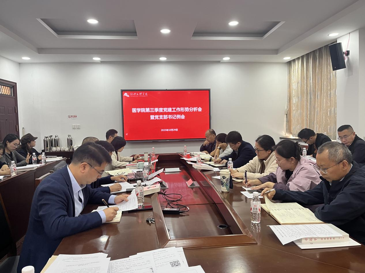此次会议进一步明确了党建工作的重点任务和推进方向,凝聚了思想共识、压实了工作责任,为学院医学教育高质量发展提供坚强政治保障。(院办公室 任富丽)