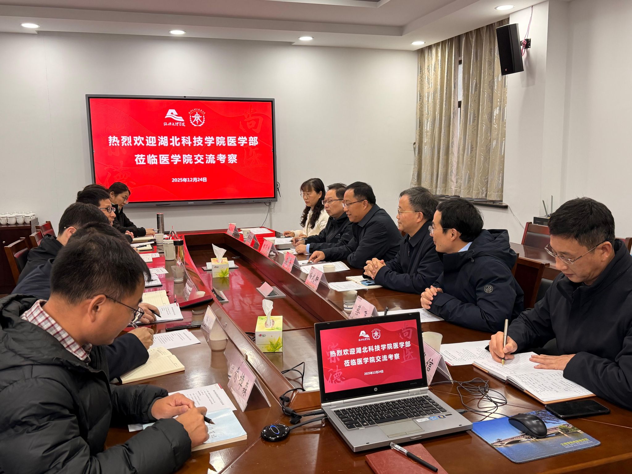 12月24日,湖北科技学院医学部党工委书记高卉带队一行7人莅临我院考察交流,聚焦医学教育高质量发展开展深度研讨。医学院执行院长方兴亮、副院长孙一勤及相关职能科室、系部负责人热情接待来访嘉宾。