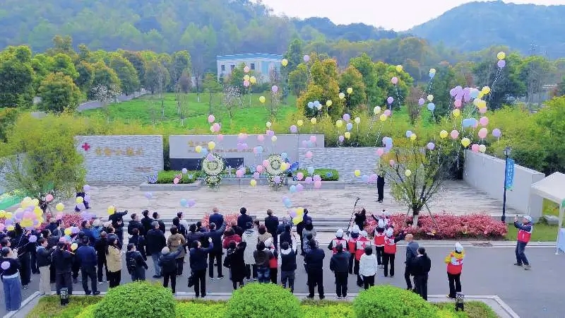 在草坪安葬区,礼仪人员按程序落葬:放置花瓣、摆放花环、撒下鲜花。每一个环节都庄重而温情,象征着生命以最自然的方式回归大地。捐献者家属代表、红十字志愿者以及医学生代表依次上前,向安葬区敬献鲜花,表达最深切的缅怀与敬意。生如夏花之绚烂,逝如秋叶之静美。陈铨标、徐张宝、丁文达、寿彩英、杨昌明、孙永江、徐江——这7位先行者,生前以爱推动人类健康事业,身后选择成为生态殡葬先行者。纵然身体归乎山林,但大爱永存人间,生生不息。(红十字会、教研科 马国庆)