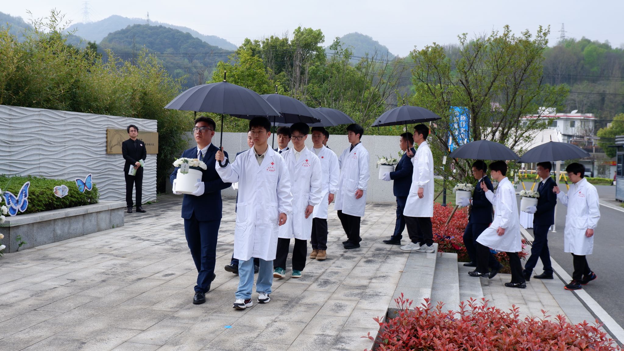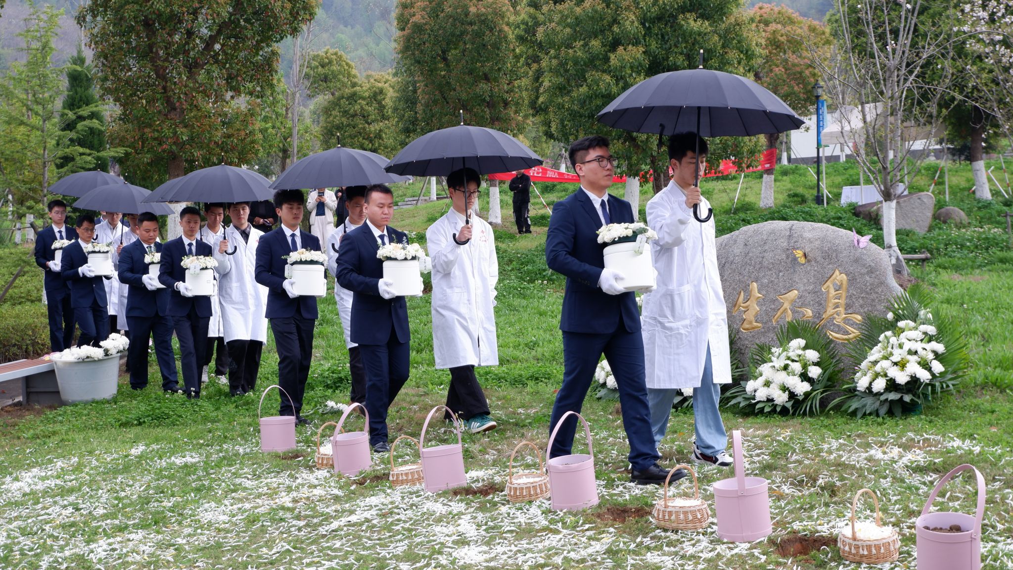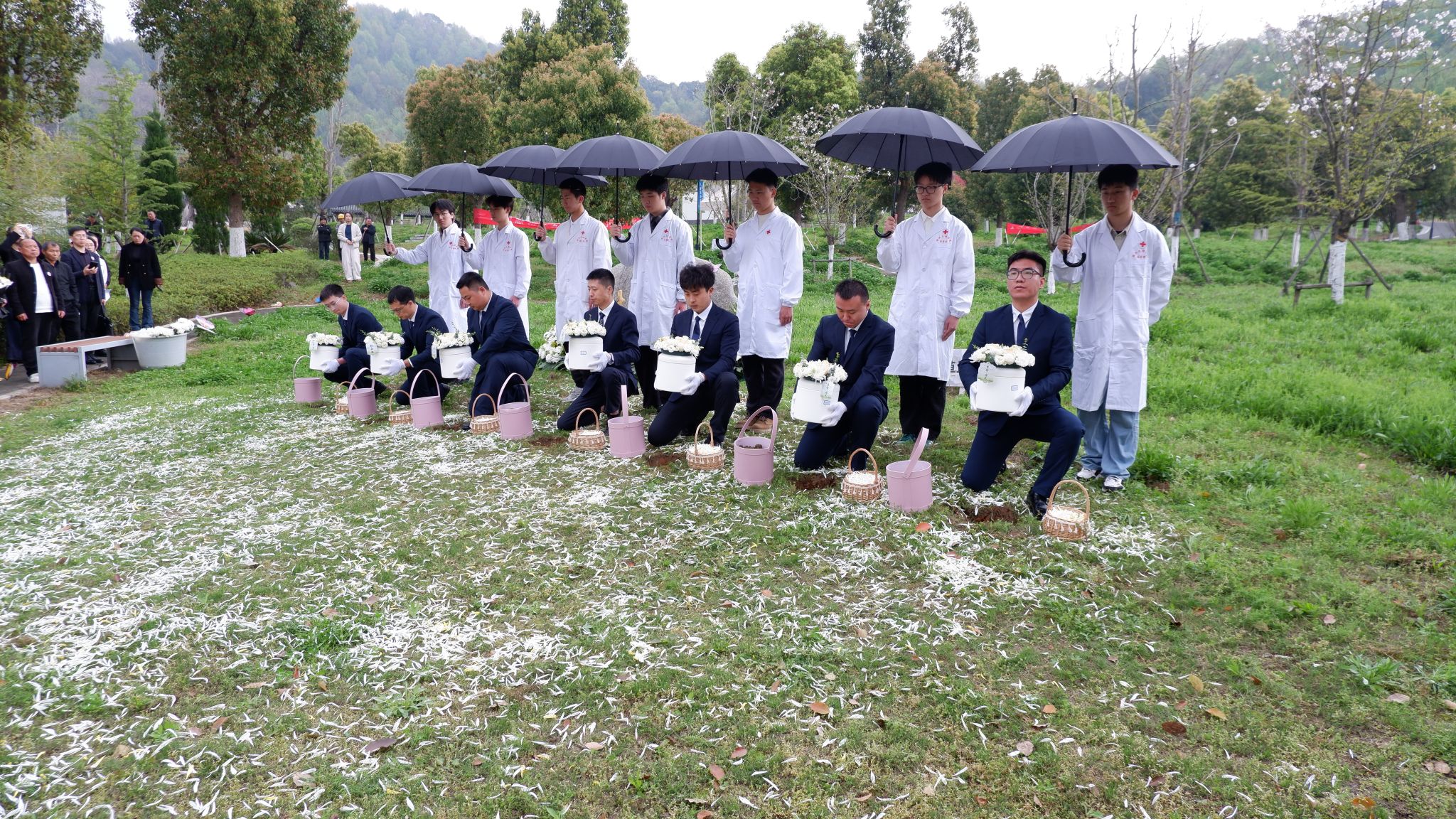 春风化雨寄哀思,松柏凝翠慰英灵。2026年3月31日上午,在清明节即将来临之际,绍兴市“生命礼敬园”内庄严肃穆,一场以“荣耀回家”为主题的人体器官和遗体(组织)捐献缅怀纪念活动在这里举行。活动期间,医学院为陈铨标、徐张宝、丁文达、寿彩英、杨昌明、孙永江、徐江等7位遗体捐献者举行了庄重的集体草坪生态安葬仪式,让这些以奉献书写生命终章的“无语良师”,以节地生态的方式回归自然、荣耀回家。