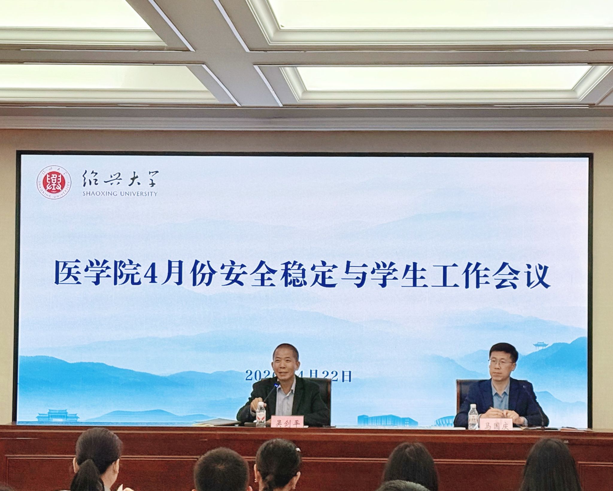 4月22日下午,医学院在6号楼A405会议室召开4月份安全稳定与学生工作会议,全面部署近期学生工作重点,强化安全稳定责任,提升学生教育管理与心理健康服务水平。医学院党委书记吴剑平主持会议并讲话,医学院党委副书记、纪委书记马国庆部署工作,各科室、系部负责人,全体辅导员及班主任共计50余人参会。