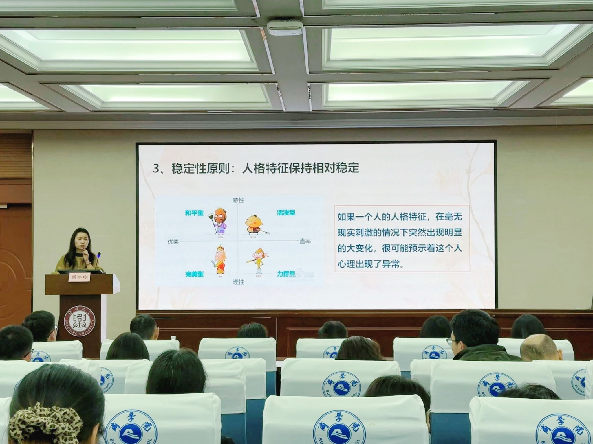 会议第三阶段,学校心理健康教育中心主任顾玲玲受邀开展《做学生的守“心”人——心理问题的识别与应对指南》专题培训。顾老师以心理健康核心判断标准为切入点,结合学生工作中的典型案例,深入讲解抑郁、焦虑、双相等常见精神障碍的识别要点、危机预警信号与科学应对策略,通过专业理论与实操方法的讲解,为全体辅导员、班主任精准识别学生心理危机、规范开展心理帮扶工作提供了专业指导与有力支撑。(学生科 杨荧)