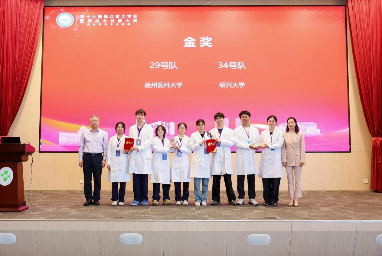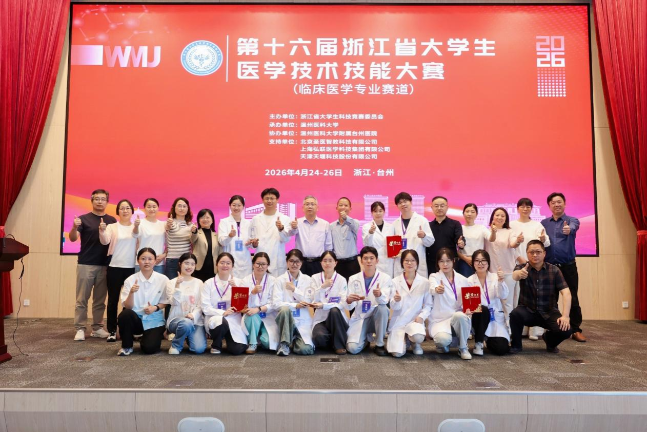 4月26日下午,第十六届浙江省大学生医学技术技能大赛(临床医学赛道)闭幕式在温州医科大学附属台州医院举行。我校3支代表队凭借扎实的理论功底、娴熟的临床技能和出色的团队协作,从全省参赛队伍中脱颖而出,荣获一金二铜的优异成绩,这是我校时隔九年再次夺得该赛事金奖。