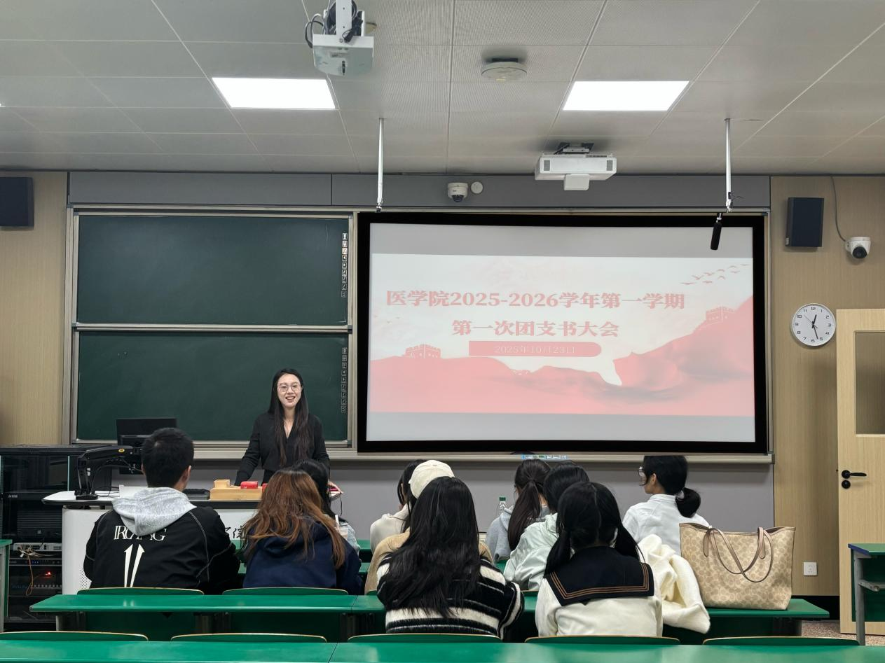为进一步夯实新学期基层团组织建设根基,明确团支书工作职责与方向,推动团学工作高质量发展,我院于10月23日中午12:30在财贞楼207教室召开医学院2025-2026学年第一学期第一次团支书大会。团委书记谢佳琪老师、团委组织部负责人吕贻彤、陶思雨同学出席会议,医学院2025级团支书参会,本次会议由团委书记谢佳琪老师主持。