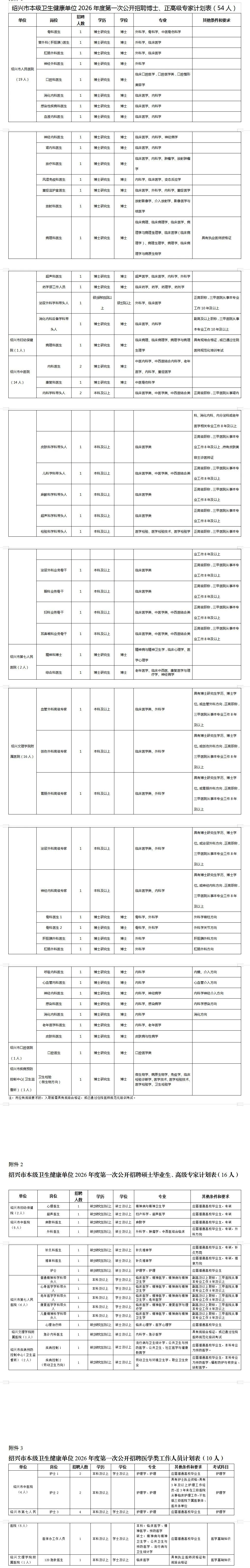 附件:1.绍兴市本级卫生健康单位2026年度第一次公开招聘博士研究生、正高级专家计划表