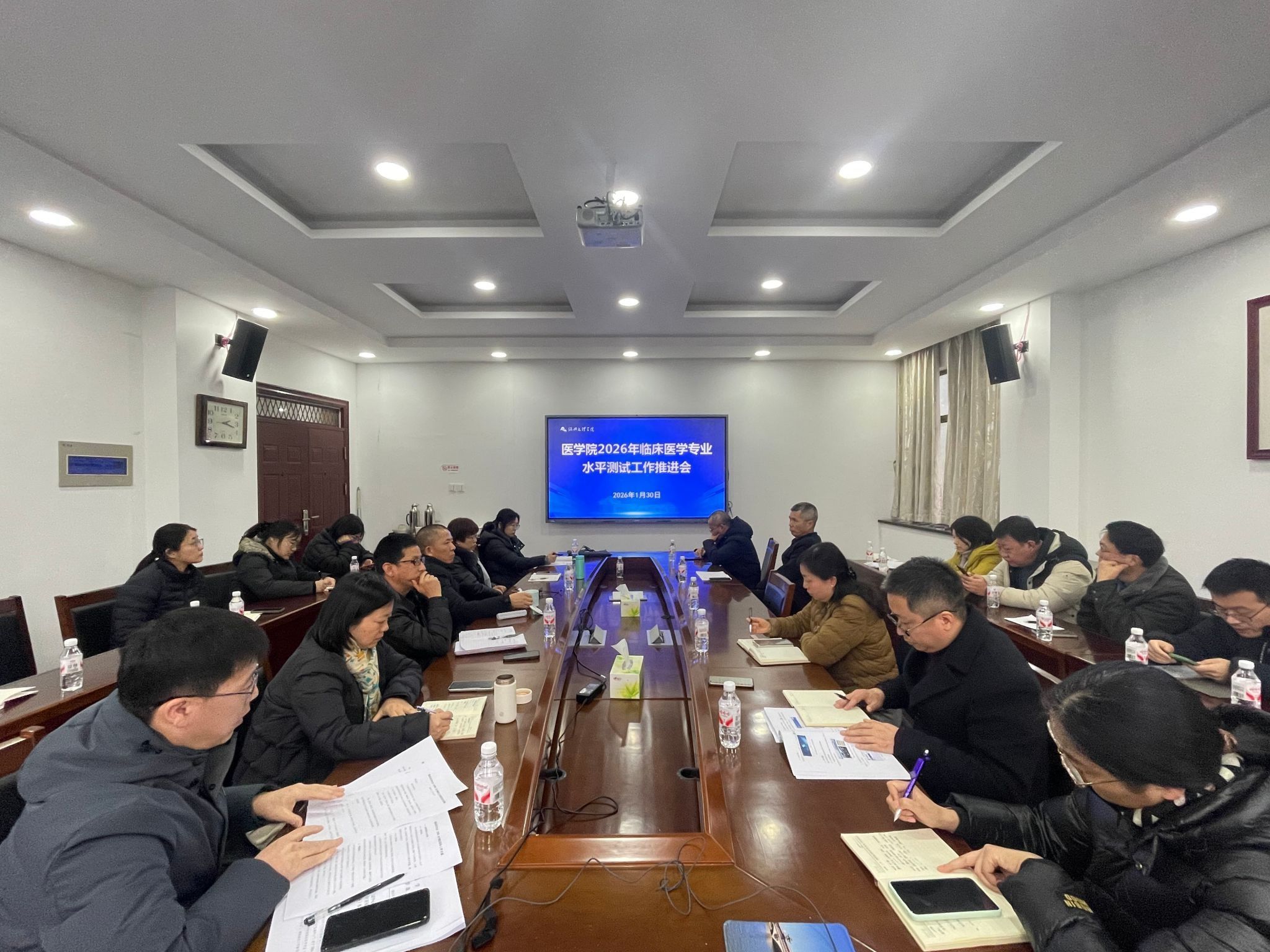 为全面部署临床医学专业(本科)水平测试工作,确保考试组织平稳有序,并以此为契机深化教育教学改革,1月30日下午,医学院召开临床医学专业(本科)水平测试工作推进会。全体院领导、各职能科室负责人、各相关教研室主任参加会议。
