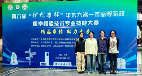 9月26日-27日,第六届“伊利康杯”华东六省一市高等院校医学检验技术专业技能大赛在蚌埠医科大学举行,医学检验技术专业2022级学生王意洁、徐炯、郑思曼和傅丽娜4名学生参加比赛,取得了团体三等奖和1项个人金奖的优异成绩。