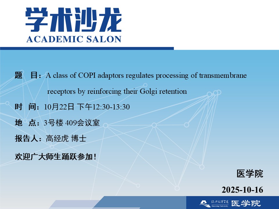 【学术沙龙】A class of COPI adaptors regulates processing of transmembrane receptors by reinforcing their Golgi retention