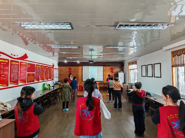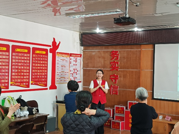 活动现场暖意融融,居民们踊跃报名,参与热忱空前高涨。同时,志愿者们各司其职、用心服务,负责人在前带队示范、带领大家跟随节奏练习动作;其余志愿者穿梭于居民之间,逐一纠正动作、细致指导,帮助居民规范练习、放松身心。