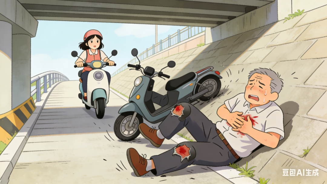 时间倒回3月12日的傍晚。那天,由于医生门诊繁忙,未能按时下班,作为门诊预检护士的谢晓晓下班也比平时晚了一些。当她骑车行至龙湖天街至鑫州海湾大酒店的桥下坡道时,眼前的一幕让她下意识地捏紧了刹车——一位大伯连人带车重重摔倒在斜坡上。鞋裤破损,头皮可见明显血肿,他痛苦地捂着肋部,膝盖处满是渗血的擦伤。
